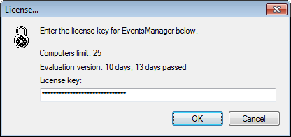 NOTE: If you are upgrading from a previous version of GFI EventsManager, you will need to enter the license key for the new version that was sent via email.